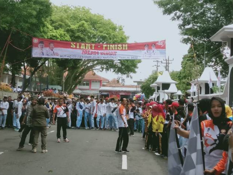 SelengkapnyaSelasa,13 Desember 202 PGRI Kabupaten Temangung kerahkan massa untuk megikuti jalan sehat. Kegiatan ini dilaksanakan bertepatan dengan HUT PGRI ke-77 dan Hari Guru nasional tahun 2022 di Kabupaten Temanggung. Tujuan saling merekatkan antara anggota PGRI dengan pemerintah dan masyarakat, serta sebagi wujud nyata persatuan dan...