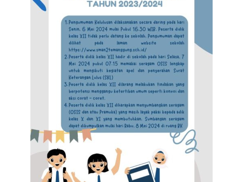 PENETAPAN KELULUSAN SISWA KELAS XII SMA NEGERI 2 TEMANGGUNG TAHUN PELAJARAN 2023/2024 DAPAT DIUNDUH PADA TAUTAN DI BAWAH INI :HASIL PENETAPAN KELULUSAN SISWA KELAS XII SMA NEGERI 2 TEMANGGUNG TAHUN PELAJARAN 2023/2024 ...