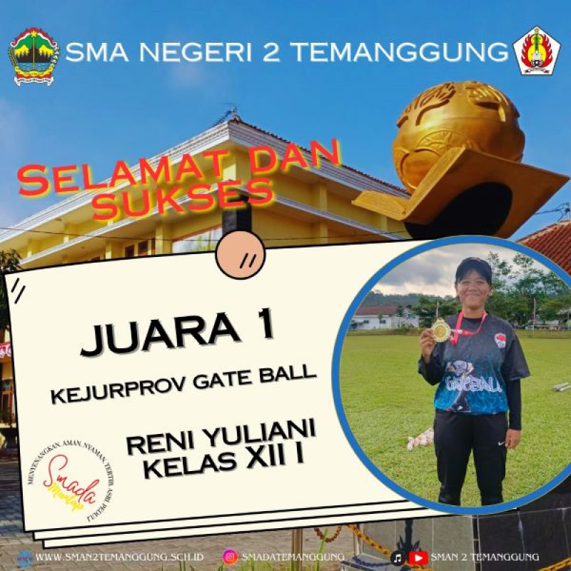 SELAMAT KEPADA RENI YULIANI KELAS XII I SMA NEGERI 2 TEMANGGUNG YANG TELAH MERAIH JUARA I KEJURPROV GATE BALL TAHUN 2025.
